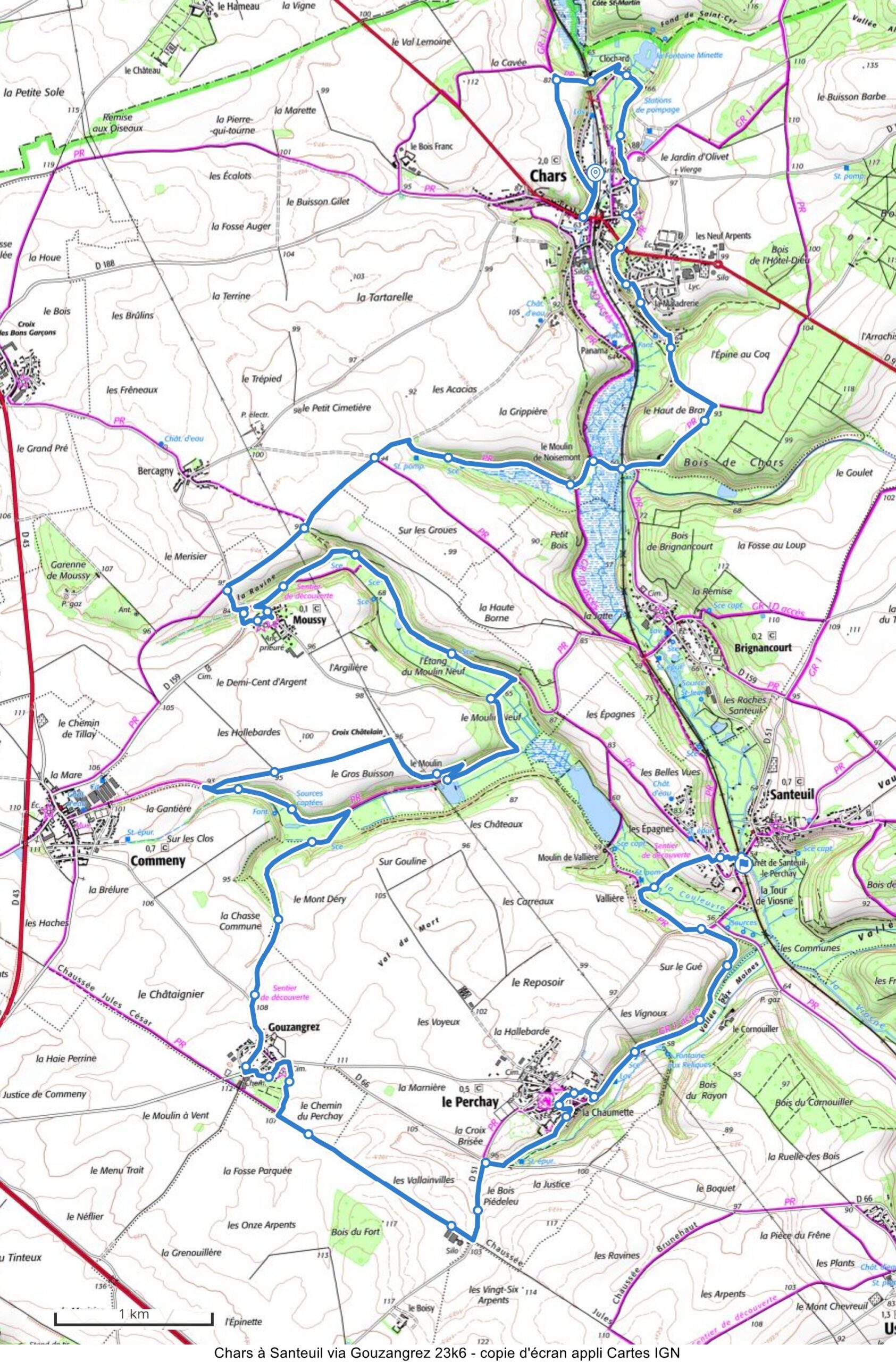 De Chars à Santeuil via Gouzangrez – 25km